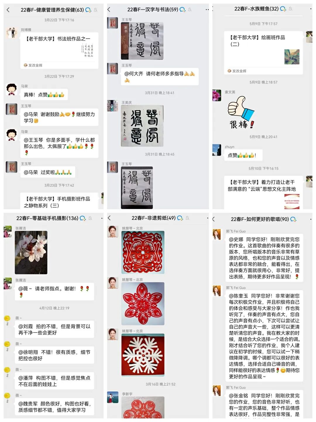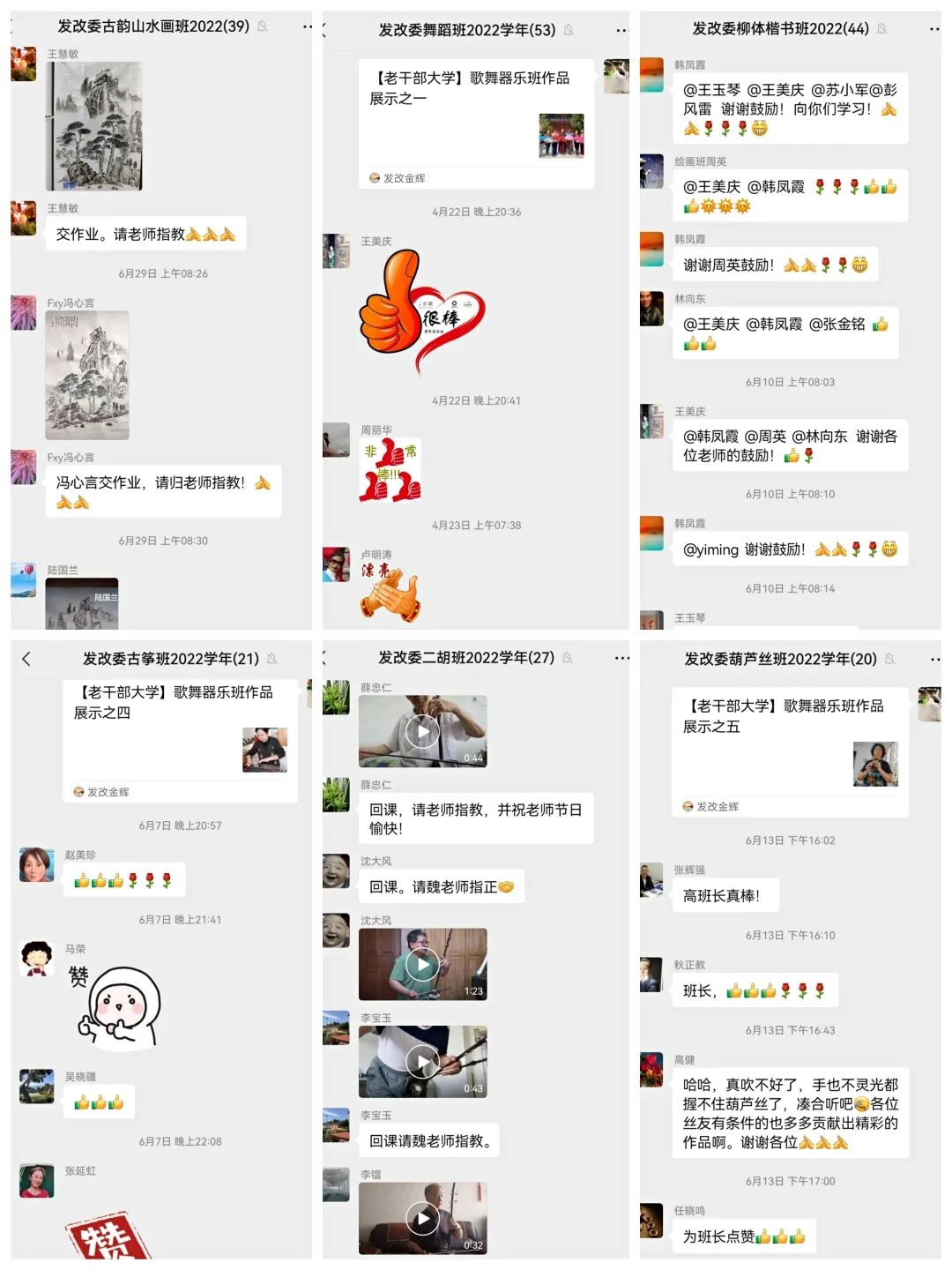 6月底,为期近4个月的国家发展改革委老干部大学2022学年第一学期作业交流云展圆满结束。此次活动是老干部大学不断改进教学工作的一项创新举措,在积极克服新冠疫情影响、搭建平台促进线上教学相长方面取得了积极成效,有效提升了学习效果、充分展示了学员风采,获得老同志一致好评。