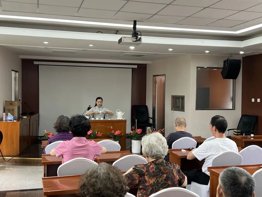 北京本轮疫情刚刚得到有效控制,轻工离退休干部局抓住有利窗口期,把夏季雅集活动嵌入老同志健康休养之中。我们再次邀请国家级茶艺技师、国家首批汉学茶礼导师、中央国家老年大学师资库教师程琳,分期向老同志及家属介绍中国茶文化的悠久传承和独特魅力。在轻松愉快的氛围中与大家分享品茶鉴茶的乐趣,解答老同志们在茶叶存储、冲泡技巧、饮茶与养生的关系、生活中如何行茶礼等方面的问题。